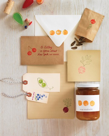 Cork stamps. GENIUS! I mean, we all like wine a little! and these are so cute. Just grab a few corks and ink in different colors and start stamping! then complete the fruit with a marker by adding leaves.